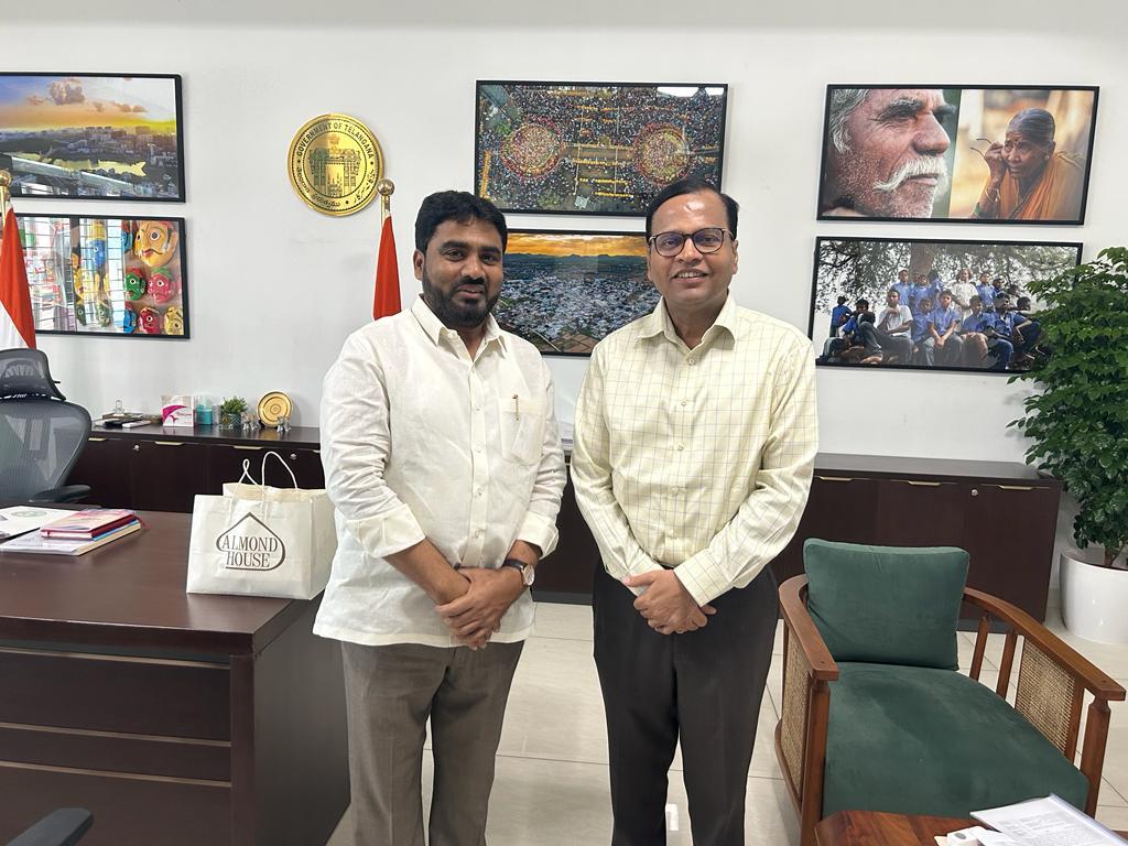 Janab Mohd Imtiyaz Ishaq Sahab, Hon’ble Chairman – TSMFC has visited the Secretariat this morning and met with Sri. K. Ramakrishna Rao Garu, IAS, Special Chief Secretary, Finance Dept. to extend his personal gratitude in the eve of their cooperation and support towards the budget in connection with 100% Subsidy Loan under Economic Support Scheme and also requested him to release the 2nd phase budget at the earliest possible.
